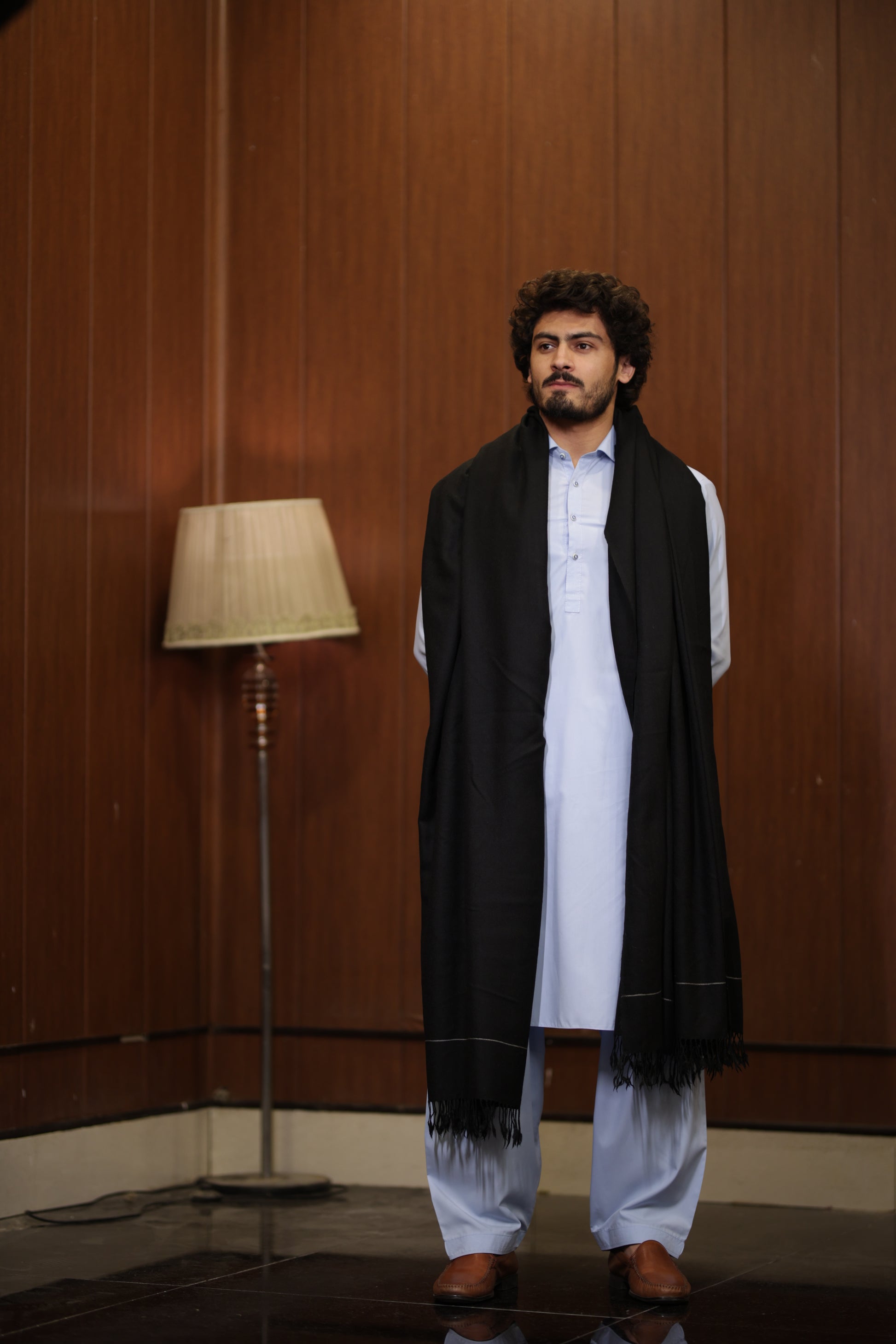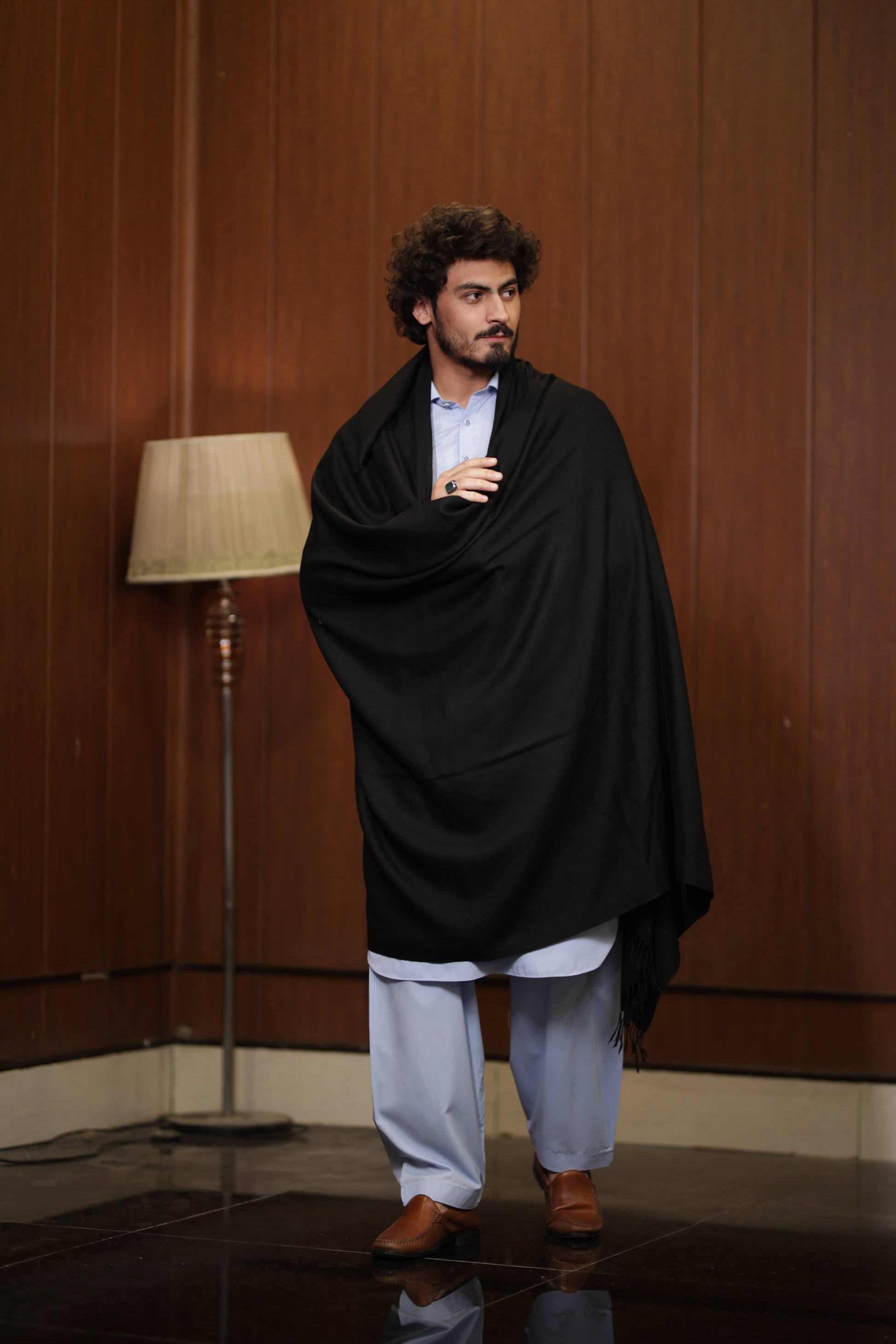 PREMIUM QUALITY STRIPED JET BLACK PURE WOOLEN SHAWL